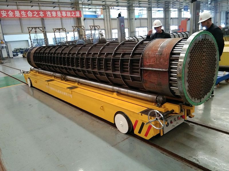 鋼卷運(yùn)輸電動(dòng)有軌平板車一般是臺面上安裝V型架和滾輪架等做輔助作用,一般是防止圓形的工件翻滾或是固定工件,有的是在噴漆噴砂房使用,來翻滾工件,以達(dá)到自動(dòng)翻滾工件,從而達(dá)到更好地打磨和噴漆。平車臺面上安裝的V型架和滾輪架的安裝是根據(jù)客戶需求安裝的,可以分為可拆卸和不可拆卸的,對于不可拆卸的一般是只能拉卷材一類的,使用場合比較少,對于可拆卸的卷材運(yùn)輸車就是V型架可以隨時(shí)去掉,在需要拉卷材時(shí)使用V型架,在不拉卷材時(shí),比如拉一些板材或是其它工件,可以將V型架去掉,這樣就實(shí)現(xiàn)一種平車,多個(gè)功能了。